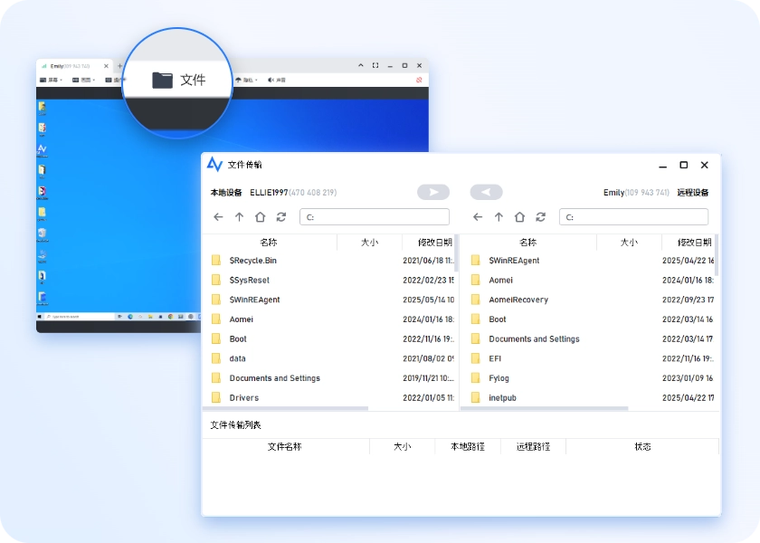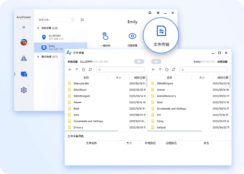 AnyViewer 可轻松实现视频和数据等大型文件的远程传输,无需使用电子邮件或其他有大小限制和复杂变通方法的软件。