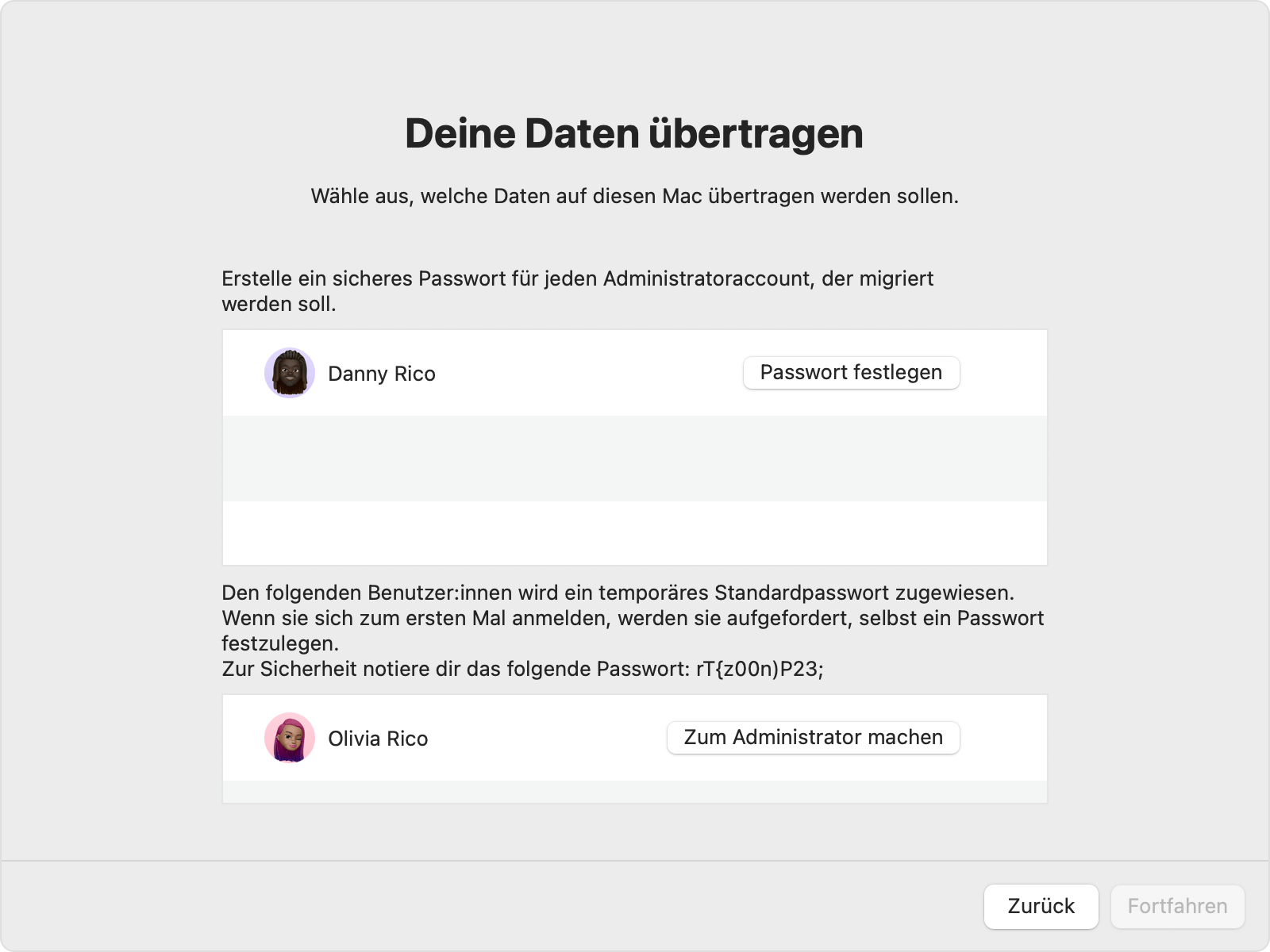 • Schließen Sie nach Abschluss den Migrationsassistenten auf beiden Macs und melden Sie sich bei Ihrem neuen Mac an.