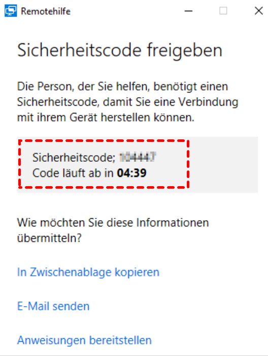 Schritt 4. Sie erhalten dann einen Sicherheitscode, der 10 Minuten lang gültig ist. Senden Sie diesen an die entfernte Seite, die den Bildschirm freigeben möchte.