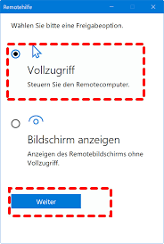 Mit der Remotehilfe können Sie einem anderen Gerät gestatten, Ihren Bildschirm anzuzeigen, mit oder ohne volle Kontrolle.