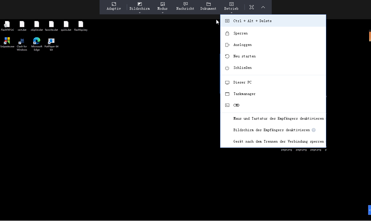 Dann können Sie den Bildschirm des Remote-Computers sehen. Bitte beachten Sie, dass in der Ansicht des Bildschirms keine Fernsteuerungsoperationen erlaubt sind, aber andere Operationen weiterhin möglich sind, z. B. die Änderung der Bildschirmauflösung, der Dateitransfer usw.