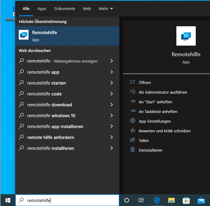 Schritt 1: Suchen Sie „Remotehilfe“ im Startmenü und öffnen Sie es.