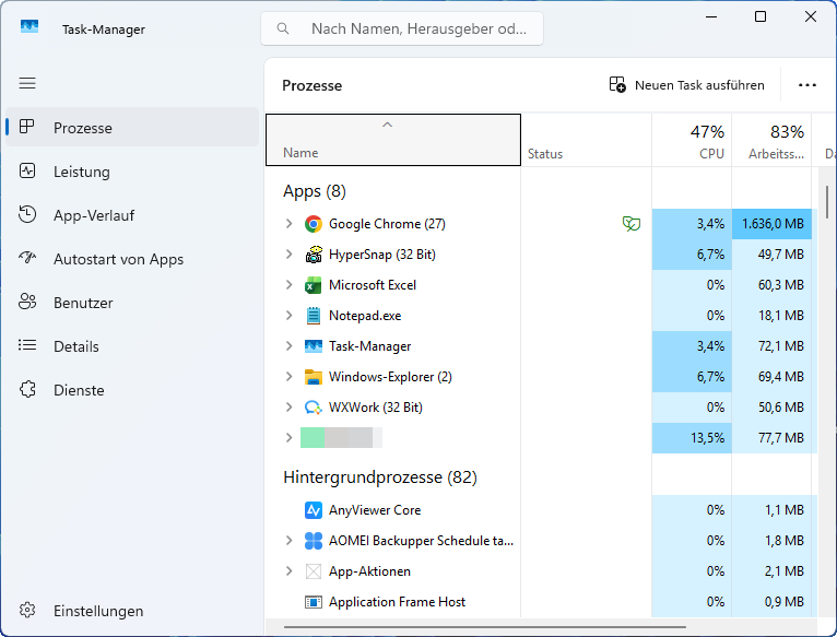 Schritt 1: Drücken Sie Ctrl + Shift + Esc, um den Task-Manager zu öffnen.
