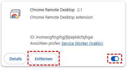 Fall 2: Google Chrome Remote Desktop-Erweiterung entfernen