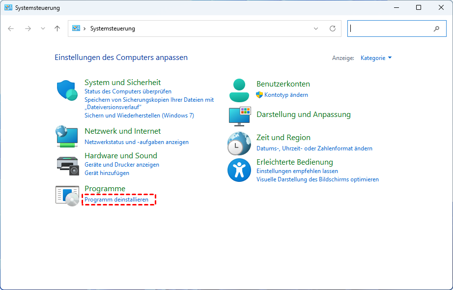 Schritt 1: Öffnen Sie die Systemsteuerung, suchen Sie nach Programmen und klicken Sie auf Programm deinstallieren.