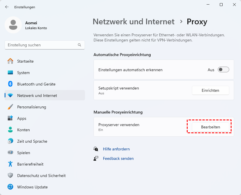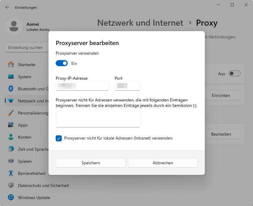 Schritt 3: Da Chrome keine integrierten Proxy-Einstellungen bietet, werden Sie zu den nativen Proxy-Einstellungen Ihres Betriebssystems weitergeleitet. Geben Sie hier Ihre Proxy-Daten ein.