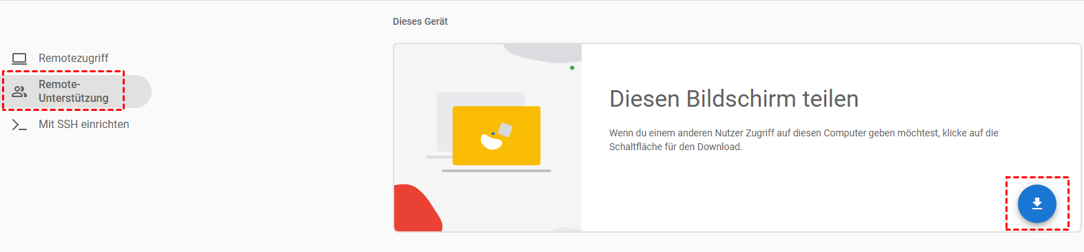 Schritt 1. Öffnen Sie auf dem Host-Computer die Download-Seite von Chrome Remote Desktop. Klicken Sie zunächst auf Remote-Unterstützung und dann auf die blaue Download-Schaltfläche.