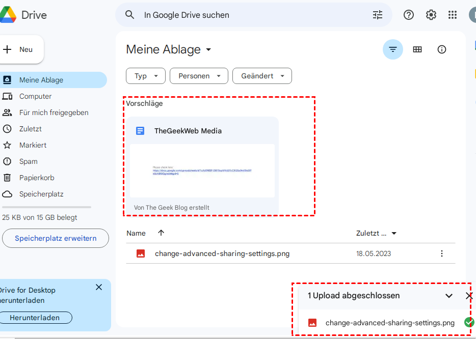 Sie können auch Dateien von Laptop zu Laptop über Cloud-Speicherdienste wie Google Drive und OneDrive teilen. Hier nehmen wir Google Drive als Beispiel.