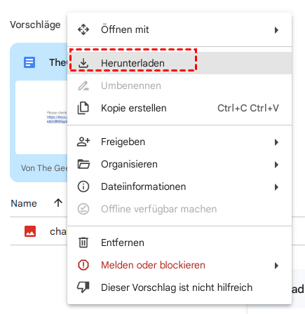Schritt 4. Öffnen Sie Google Drive auf dem anderen Computer und melden Sie sich mit demselben Google-Konto an. Finden Sie die übertragene Datei, klicken Sie mit der rechten Maustaste auf die Datei und wählen Sie Herunterladen im erweiterten Menü, um die Remote-Dateiübertragung zwischen verschiedenen Computern zu realisieren.
