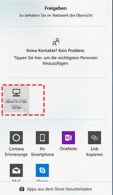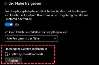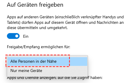 - „Jeder in der Nähe“ bedeutet, dass Ihr PC Inhalte von allen Geräten in der Nähe teilen oder empfangen wird.