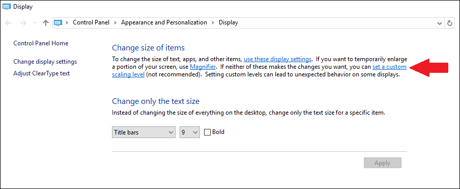 Schritt 3. Gehen Sie zu „Erweiterte Größenanpassung von Text und anderen Elementen(Advanced sizing of text and other items)“.
