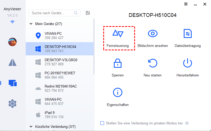 Weg 1. Über AnyViewer den Windows-PC Bildschirm teilen
