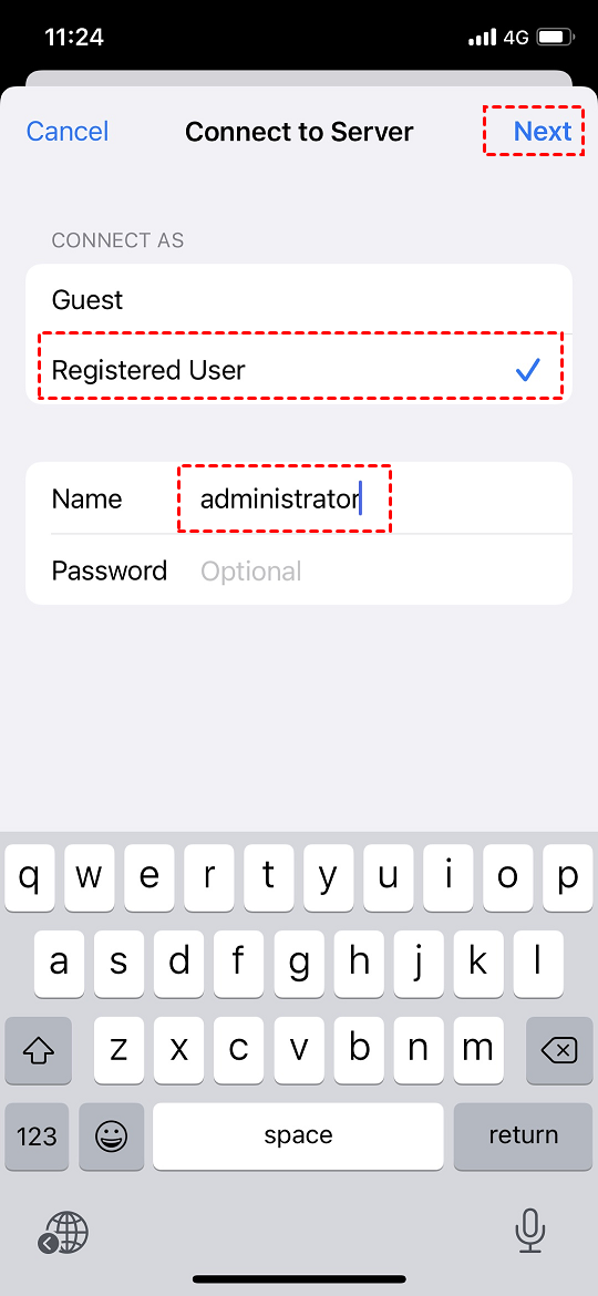Schritt 5. Kehren Sie zur Hauptschnittstelle zurück und klicken Sie auf das soeben erstellte IP-Adressensymbol, geben Sie den Benutzernamen und das Kennwort des kontrollierten Computers in das Pop-up-Fenster. Geben Sie Ihr Benutzerkonto ein und klicken Sie auf Weiter, um die Verbindung erfolgreich herzustellen.