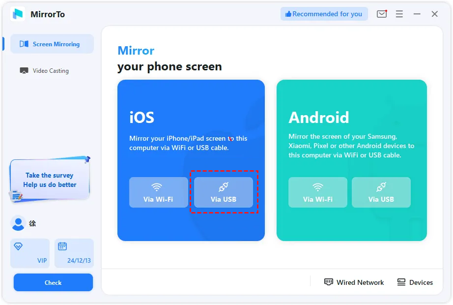 Schritte zur Steuerung des iPhones von einem Mac über USB mit AirDroid Cast: