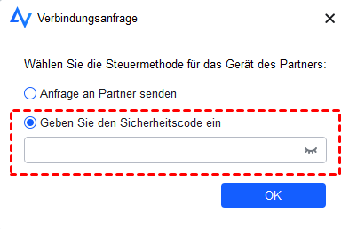 Schritt 3: Wählen Sie „Sicherheitscode eingeben“ und geben Sie den Code ein. Klicken Sie auf „OK“, um den Remotezugriff herzustellen.