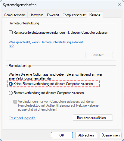 Remote Desktop bei Bedarf vollständig deaktivieren