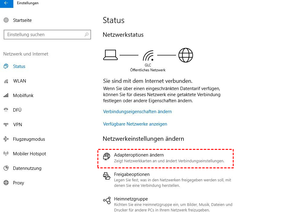 Verbindung über das lokale Netzwerk:
