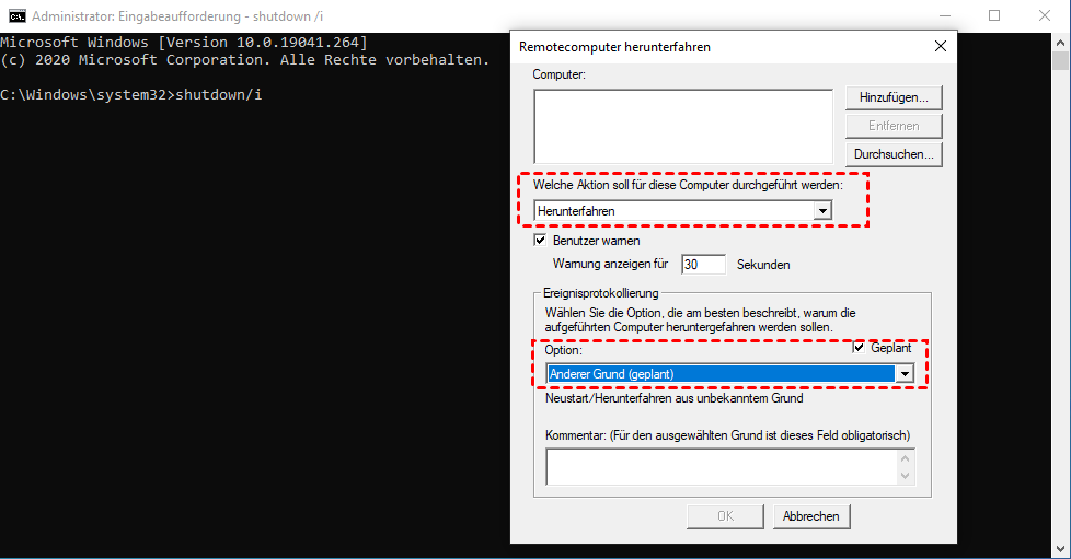 Vorbereitung vor dem Remote-Herunterfahren des Computers