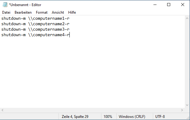 Schritt 1. Verwenden Sie Notepad, um einen Befehl zum Herunterfahren des Computers einzugeben, z. B. „shutdown–m \\computername1–r“, wobei der Computername durch den Namen des Zielcomputers ersetzt werden muss und die dahinter stehende Zahl zur Unterscheidung verwendet wird Computers.