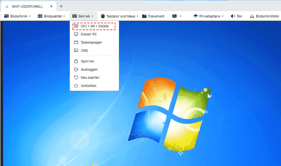 Nachdem Sie den Computer remote gesteuert haben, können Sie dessen Bildschirm anzeigen, Anwendungen ausführen und Dateien ansehen. Außerdem können Sie während der Remotesitzung die Auflösung anpassen, das Desktop-Hintergrundbild ein- und ausblenden usw.