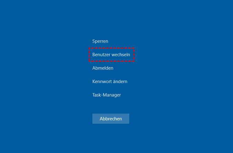 Nach Drücken der Tastenkombination können Sie auf „Benutzer wechseln“ klicken, um den Benutzerwechsel per Remote Desktop zu aktivieren.
