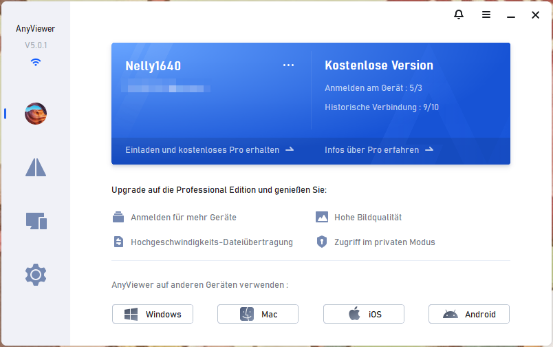 Ganz gleich, mit welchen RDP-Problemen Sie konfrontiert sind, der effektivste Weg ist die Verwendung einer zuverlässigen Remotedesktop-Alternative, um alle Probleme zu vermeiden. Hier empfehlen wir Ihnen die professionelle und dennoch leistungsstarke Remotedesktop-Software AnyViewer.
