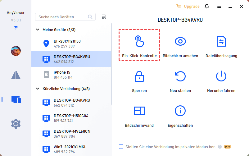 Schritt 4. Gehen Sie zu Gerät, klicken Sie auf das Hostgerät und wählen Sie „Ein-Klick-Kontrolle“, um die Fernsteuerung des Computers zu übernehmen.