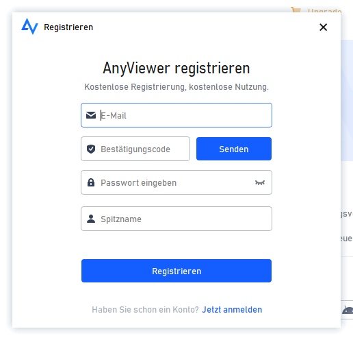 Schritt 1. Starten Sie AnyViewer auf dem Hostcomputer und klicken Sie auf „Registrieren“, um ein persönliches Konto zu registrieren.