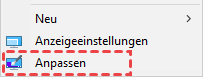 Schritt 1. Klicken Sie mit der rechten Maustaste auf den Desktop und wählen Sie Anpassen.