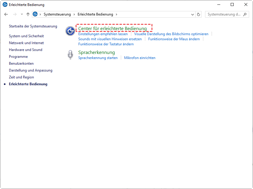 Schritt 2. Klicken Sie auf Center für erleichterte Bedienung.