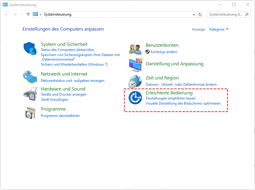 Schritt 1. Öffnen Sie die Systemsteuerung und klicken Sie auf Erleichterte Bedienung.