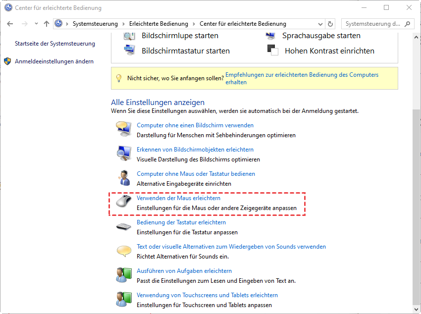 Schritt 3. Klicken Sie auf Verwenden der Maus erleichtern.