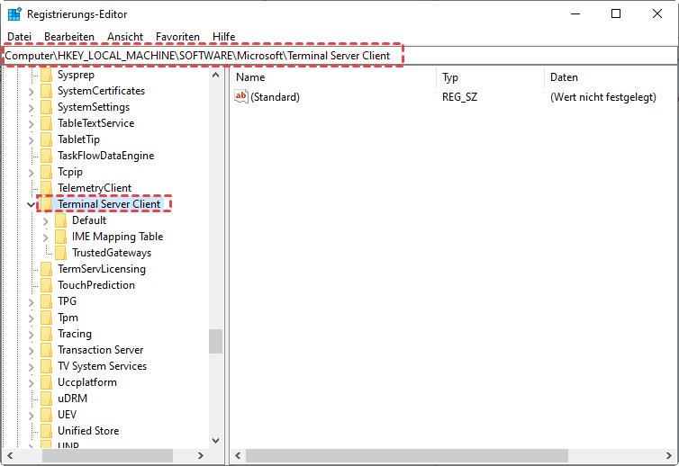Schritt 2. Gehen Sie zu Computer > HKEY_LOCAL_MACHINE > Software > Microsoft > Terminal Server Client.