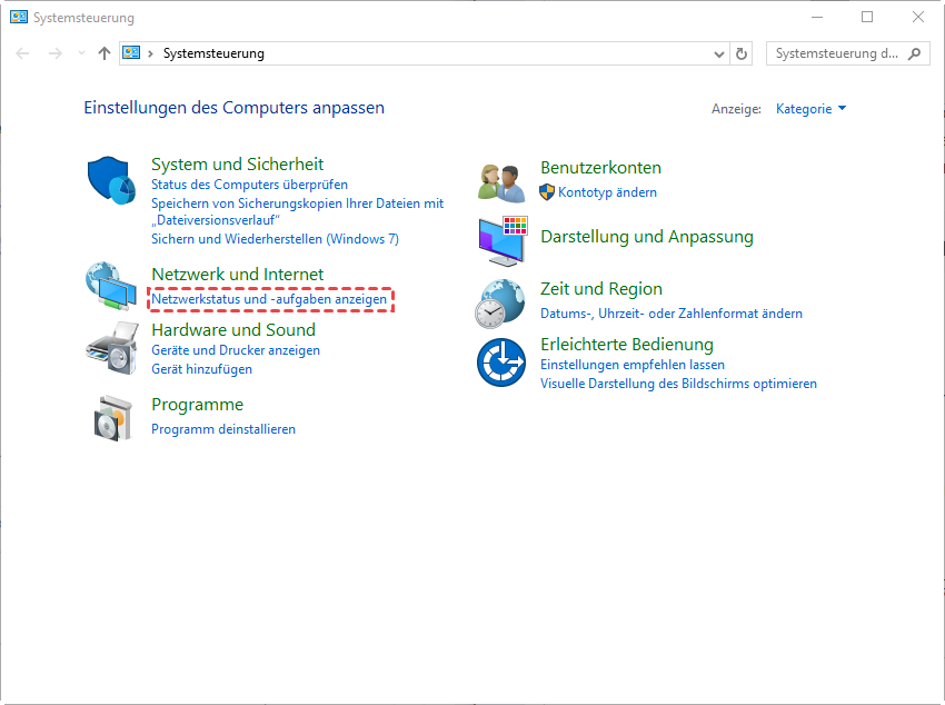 Schritt 1. Öffnen Sie Systemsteuerung > Netzwerkstatus und -aufgaben anzeigen.