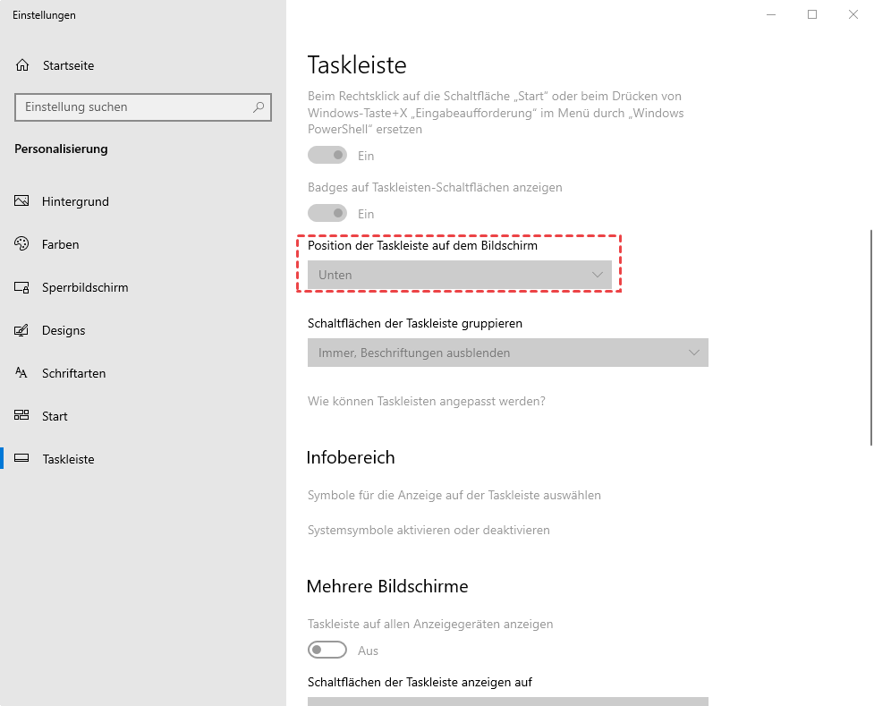 Schritt 3. Ändern Sie die Position der Taskleiste, um zu sehen, ob die Taskleiste sichtbar ist.