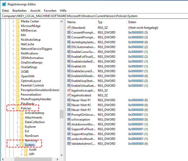 HKEY_LOCAL_MACHINE\SOFTWARE\Microsoft\Windows\CurrentVersion\Policies\System