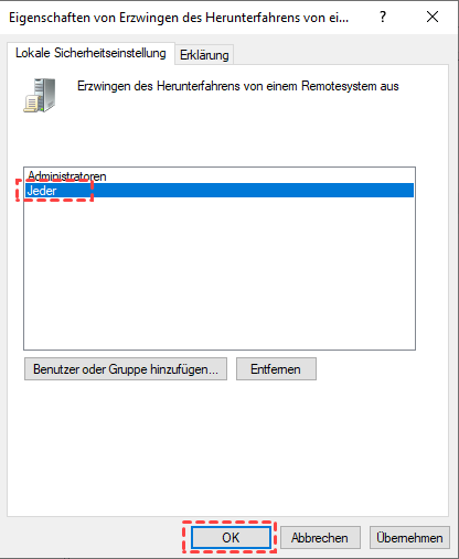 Schritt 4. Fügen Sie den Benutzer wie „Jeder“ zu und klicken Sie dann auf „OK“.