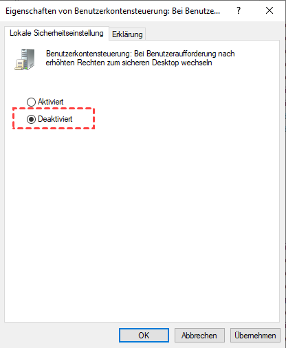 Methode 2: Benutzerkontensteuerung in der Gruppenrichtlinie deaktivieren