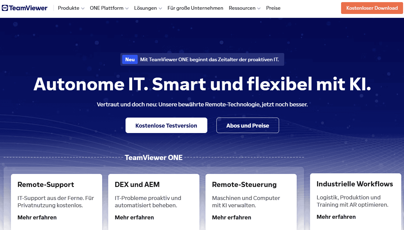 - Kostenlos für den privaten Gebrauch: Bietet eine kostenlose Version für einen Computer mit Fernzugriff.
