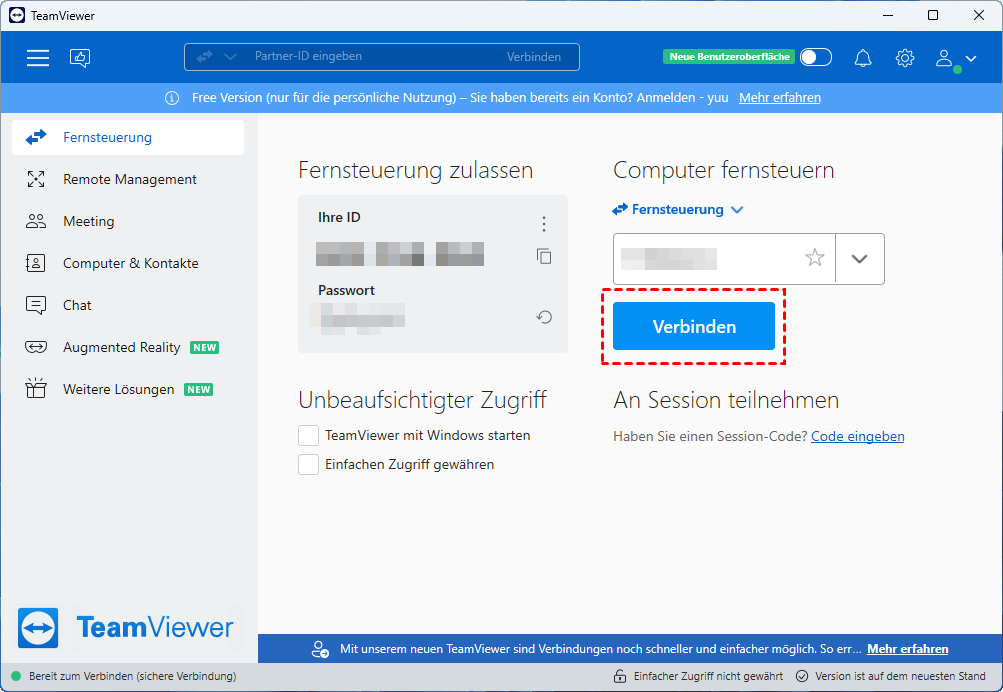 Schritt 1: Starten Sie TeamViewer auf Ihrem Gerät und öffnen Sie eine Remote-Sitzung.