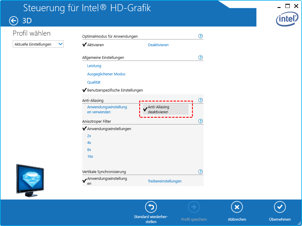 Die Ursache für den verschwommenen Bildschirm in TeamViewer könnten auch die Anti-Aliasing-Einstellungen der Grafikkarte sein. Wenn dieses Problem auftritt, können Sie die Anti-Aliasing-Einstellung in Ihren Grafikkarteneinstellungen deaktivieren.