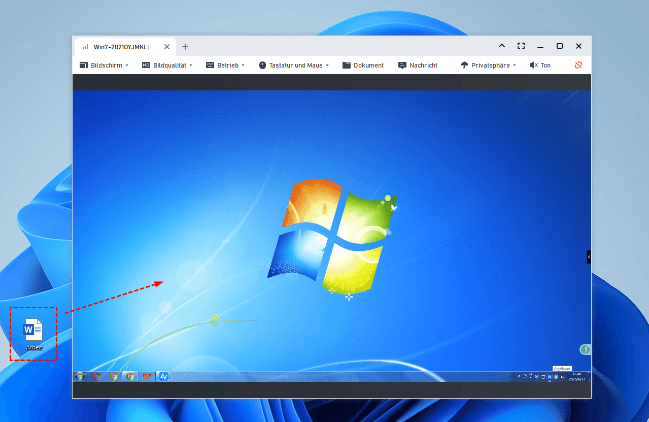 Alternativ können Sie Dateien auch per Drag & Drop direkt von Ihrem lokalen Computer auf den Remote-Computer übertragen.