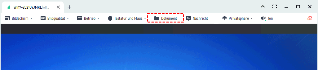 ►Tipps: Um unbeaufsichtigten Fernzugriff einzurichten, wählen Sie „Ein-Klick-Steuerung“, um eine Verbindung zu einem anderen Computer herzustellen. Mit dieser Option können Sie das Remote-Gerät steuern, als wären Sie direkt vor Ort. Nach der Verbindung können Sie Dateien über die Schaltfläche „Dokument“ in der Menüleiste übertragen.