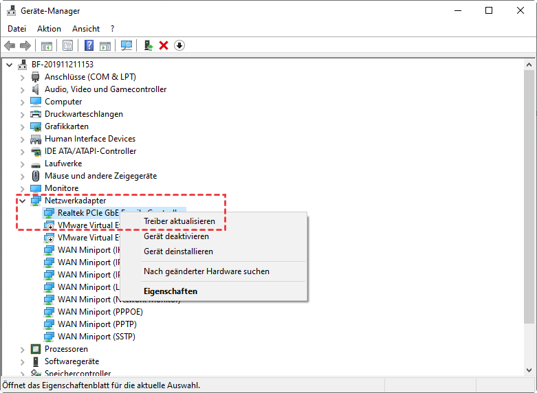 Schritt 2: Suchen Sie nach „Netzwerkadaptern“, klicken Sie mit der rechten Maustaste auf die darunterliegende Option und wählen Sie „Treiber aktualisieren“.