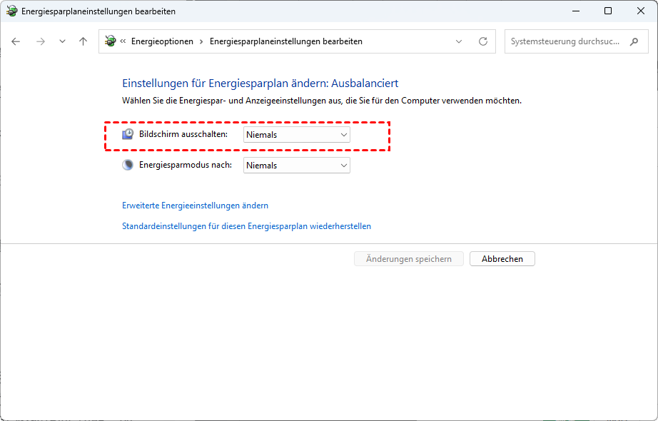 Schritt 3: Stellen Sie sicher, dass der Bildschirm im Energiesparmodus nicht vollständig abgeschaltet wird: