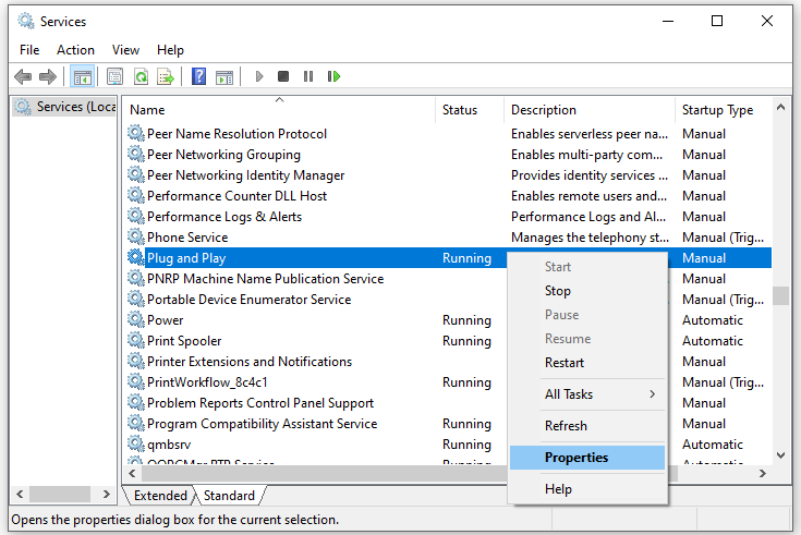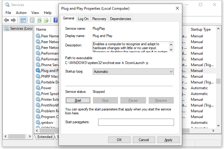 • Starten oder konfigurieren Sie den Plug-and-Play-Dienst über das Windows-Diensteverwaltungstool.