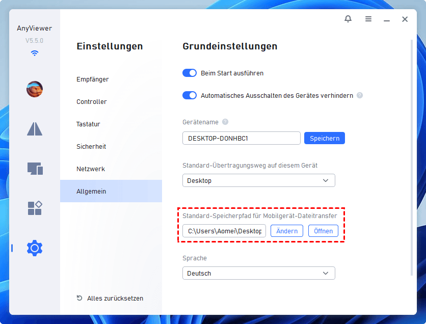 Schritt 5: Nach Abschluss der Übertragung werden die Videos direkt auf Ihrem PC gespeichert. Sie können den Standardspeicherort in AnyViewer unter „Einstellungen“ > „Allgemein“ ändern.