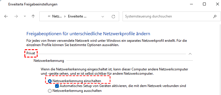 Schritt 4. Wählen Sie „Netzwerkerkennung einschalten“ und klicken Sie dann auf „Änderungen speichern“.