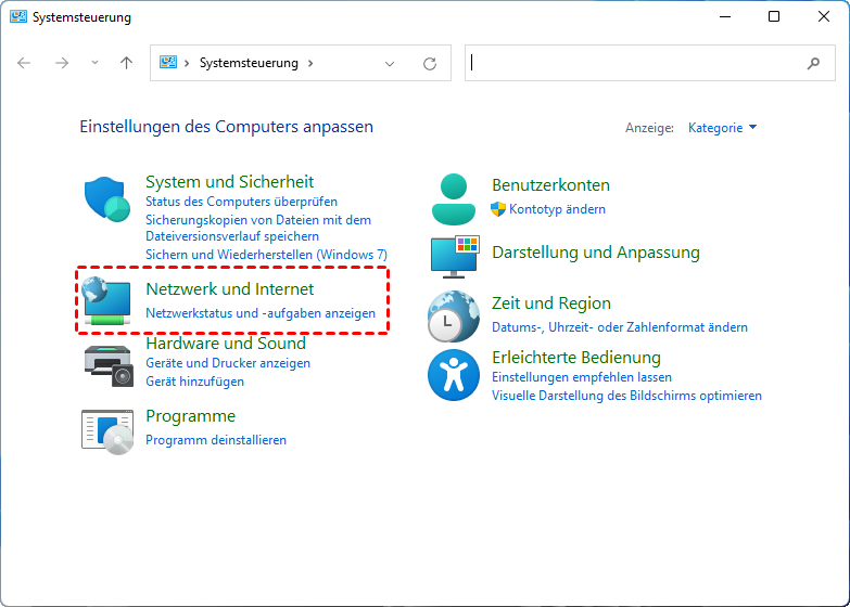 Schritt 2. Wählen Sie eine Kategorie und klicken Sie dann auf „Netzwerk und Internet“.