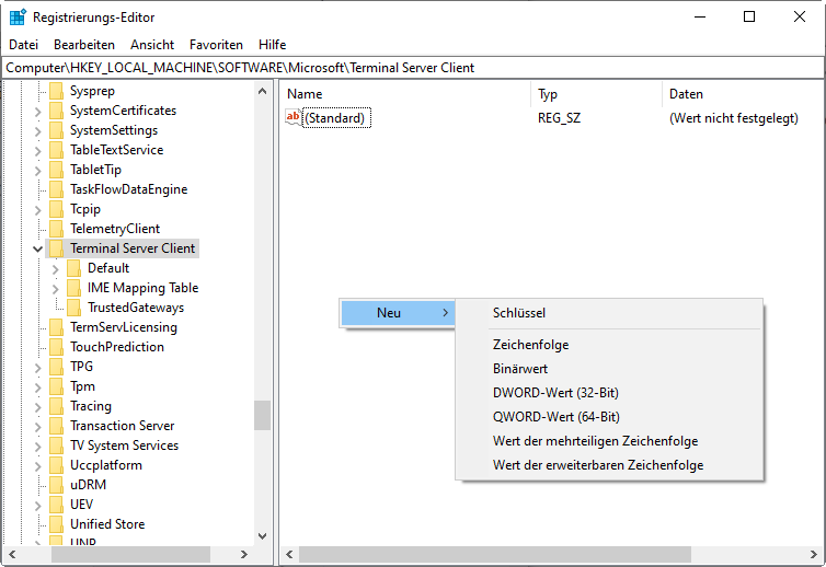 Schritt 2: Navigieren Sie zu: Computer > HKEY_LOCAL_MACHINE > Software > Microsoft > Terminal Server Client.